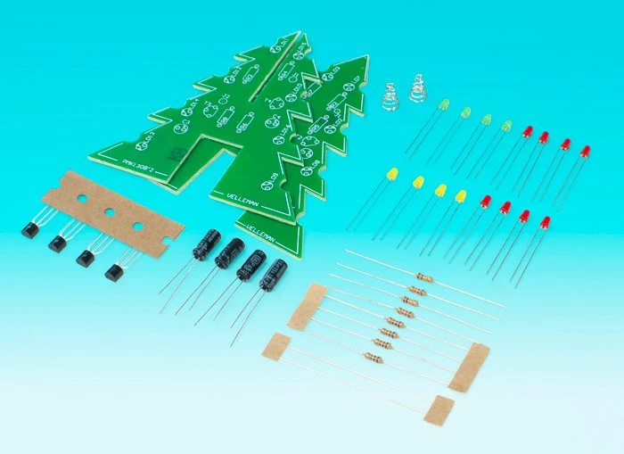Add some holiday cheer to your laboratory! A three-dimensional Christmas tree with flashing red LEDs will brighten any Scroogeās holiday. Contains 16 flashing red LEDs with extra green and yellow LEDs provided to customize your tree. A soldering iron, solder and 9 V battery are required and available separately. Will operate on 12 V DC.