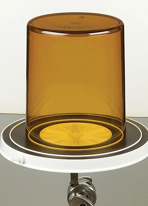 An easy-to-use, lightweight bell jar. The jar is transparent amber. It inverts on top of a vacuum base plate. The jar seals against a neoprene gasket in the AP1869 vacuum plate. The plastic bell jar has dimensions of 12″ × 12″, 18.9 L. Made of polyetherimide (PEI). PEI has good to excellent chemical resistance to acids, bases, aliphatic alcohols and hydrocarbons, and saturated, halogenated hydrocarbons.