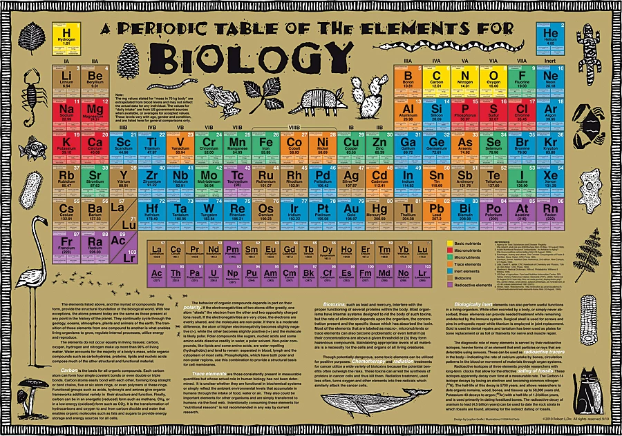 The first periodic table of the elements designed specifically for biology. Elements, compounds, bonding, ions and ionic interactions are fundamental chemistry concepts essential to all levels of biology instruction. Consider these benefits:Â