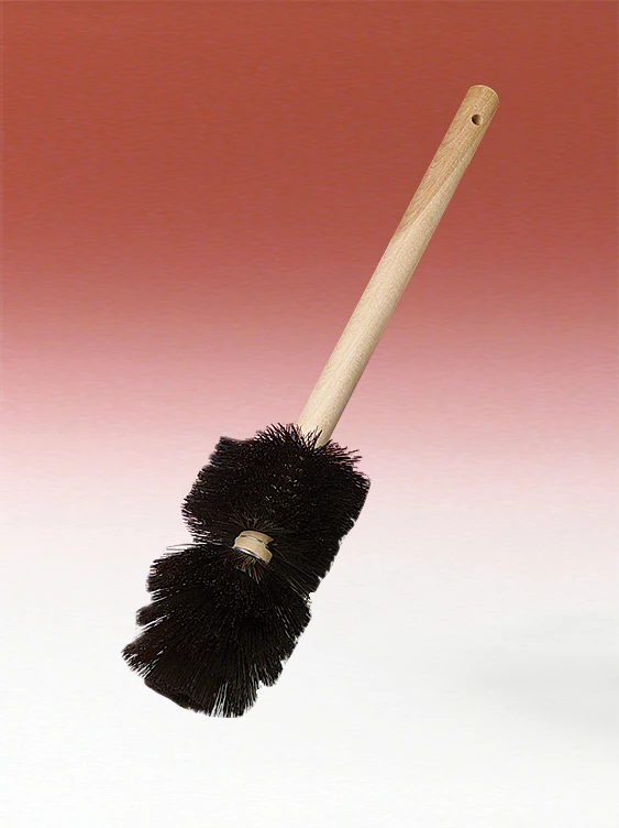 Made of stiff, black nylon woven into a hardwood handle. Overall length 12″. Bristle portion is 4″ long x 2″ in diameter.