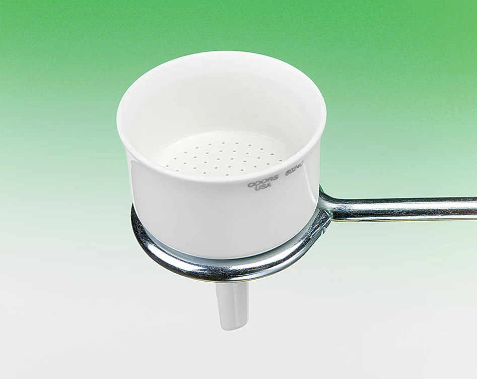 Glazed inside and out except for rim. Permanent, perforated plate mounted inside funnel.