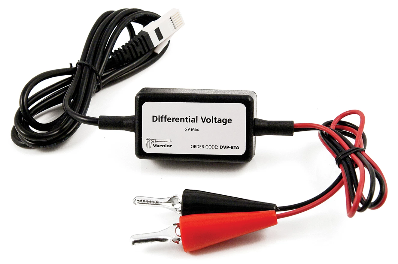 Measure low-voltages in DC and AC circuits. This durable voltage probe differs from the one that comes with your interface in that neither clip is connected to ground. With a range of ±6.0 V, this system is ideal for use in most circuit activities. Use it with the current probe to explore phase relationships in reactive components and Ohm’s law. Use multiple sensors to explore series and parallel circuits. BT Connector.