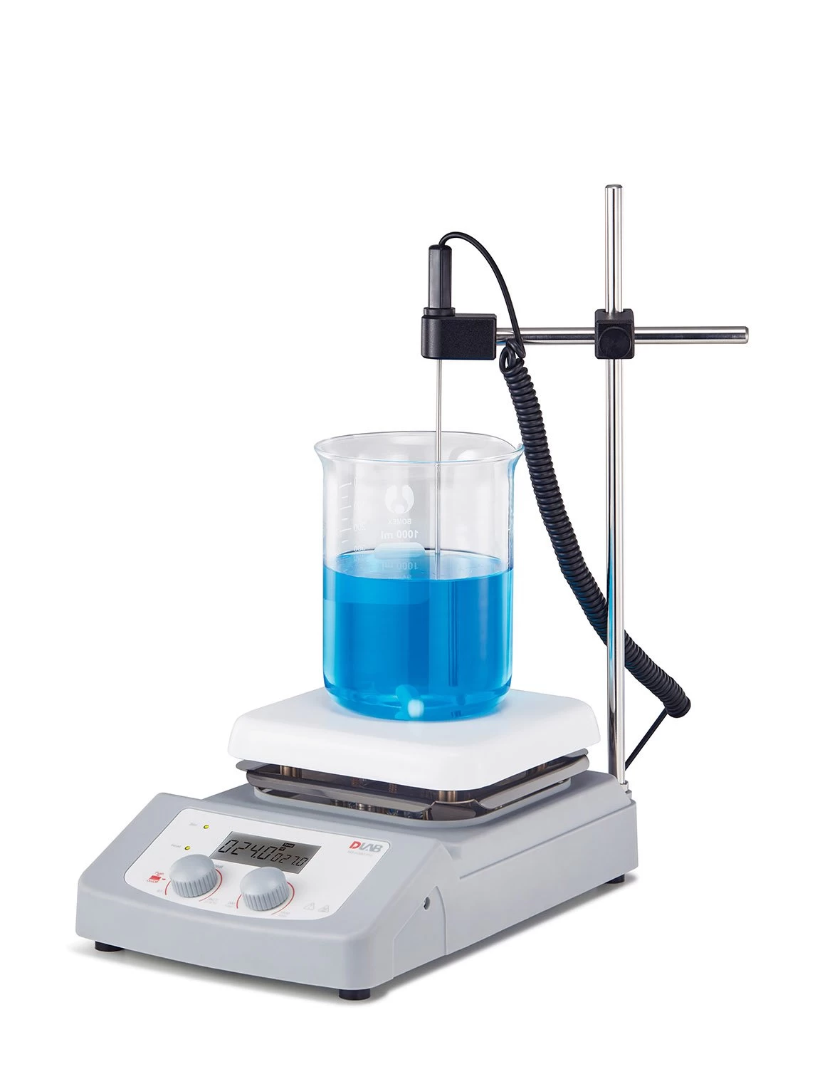 DLAB magnetic hot plate stirrers are reliable, high-quality instruments suitable for repeated and prolonged use in the teaching or research laboratory. They are available in a range of configurations that differ in maximum temperature, work plate material, temperature and stir speed and temperature resolution to name a few specifications. Compatible with optional temperature sensor/clamp accessories.