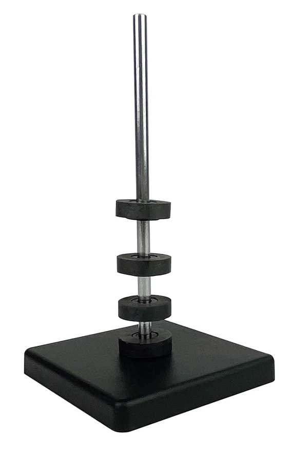 Magnetic levitation seems like magic even if you have witnessed it many times. Use this simple and easy lab apparatus to demonstrate that like poles of magnets repel each other and unlike poles attract each other. When placed on the center pole in the right order, these ring magnets appear to magically levitate above each other. When reversed they are attracted to each other at the base of the center pole.