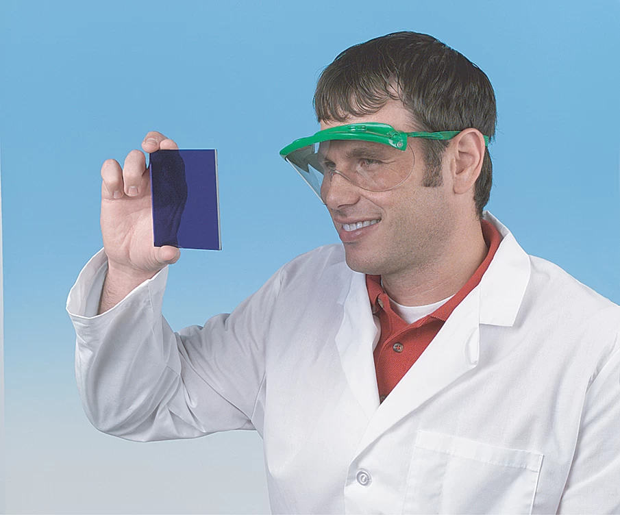 High quality, dark blue cobalt glass filter-not just blue glass like other low-cost alternatives. In flame tests, a mixture of sodium and potassium salts will produce an orange flame. This is because sodium’s orange flame masks potassium’s violet flame. If viewed through this filter, the orange color is blocked so that a violet-colored flame can be seen.
