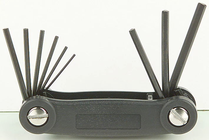 Nine-key set with sizes from 5/64″ to 3/16″. Clearly marked with sizes on case or handle for easy identification. Folds into case for easy storage.
