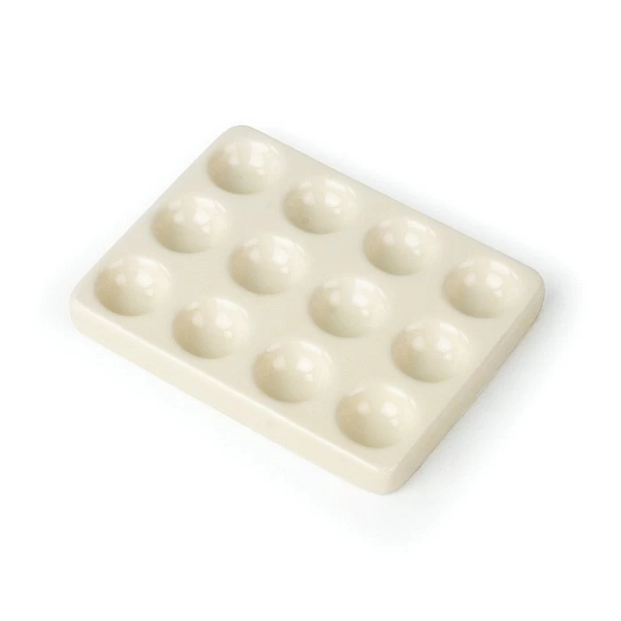 Plates glazed on all visible surfaces. The outside diameter of each well is 21 mm with a well depth of 7 mm. Plates have 12 wells. The blue plate is used to observe white precipitates. 118 x 91 mm. Autoclavable.