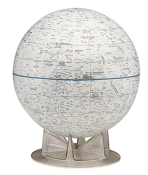 This extraordinary lunar landscape globe is NASA approved. Locate geographical features of the Moon, including craters, “seas” and mountain ranges. See the site of the first manned Apollo 11 landing. This 12″-diameter Moon of blue-gray shades is made of laminated fiberboard and rests on a sturdy plastic base. An illustrated, 12-page Story of the Moon booklet with problems and activities is included.